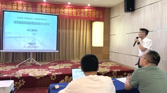 武漢市政院“拾光隧道QC小組”組員龍凡對“地鐵隧道穿越極硬巖的新方案研究”課題進行了成果發(fā)布。“拾光隧道QC小組”為解決地鐵隧道穿越極硬巖傳統(tǒng)方法安全難以保證、工作效率較低等痛點問題,研發(fā)了一種地鐵隧道穿越極硬巖的全新技術方案,攻克了復雜地質和敏感環(huán)境兩大難題。該研究成果在“武漢地鐵12號線港口村站~丁家咀站區(qū)間隧道工程”中,實現(xiàn)盾構穿越極硬巖深孔爆破預處理在武漢軌道交通地下區(qū)間的首次應用。“拾光隧道QC小組”對該創(chuàng)新成果進行了標準化建設,形成了通用設計圖和成套技術方案,現(xiàn)已在全公司推廣應用。