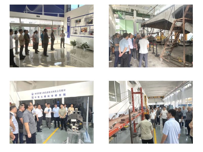 ? ? 在橋梁智能與綠色建造全國(guó)重點(diǎn)實(shí)驗(yàn)室,大家參觀了實(shí)驗(yàn)室的科研試驗(yàn)和研發(fā)成果,了解了實(shí)驗(yàn)室的發(fā)展歷程、研究方向和研究成果等。重點(diǎn)觀摩了正在進(jìn)行的足尺試驗(yàn)——大跨中央索面混凝土斜拉橋拼寬利用關(guān)鍵技術(shù),試驗(yàn)采用懸臂鋼結(jié)構(gòu)梁拼寬結(jié)合LUHPC橋面鋪裝更換的方案,為橋梁拼寬設(shè)計(jì)提供了一種全新的解決思路和技術(shù)方案;詳細(xì)聽取了基于UHPC新材料的相關(guān)試驗(yàn)成果、研究結(jié)論和應(yīng)用方向,對(duì)UHPC在橋梁工程的運(yùn)用進(jìn)行了討論,實(shí)驗(yàn)室還給予了技術(shù)指導(dǎo)和建議;深入了解了檢測(cè)機(jī)器人、建造智能裝備、監(jiān)測(cè)智能傳感器等設(shè)備和產(chǎn)品的在橋梁建造和運(yùn)維中的運(yùn)用情況,著重關(guān)注了部分設(shè)備、產(chǎn)品的迭代過程和性能參數(shù),拓寬了對(duì)橋梁智能檢測(cè)、智能建造和智慧運(yùn)維的認(rèn)識(shí)。
