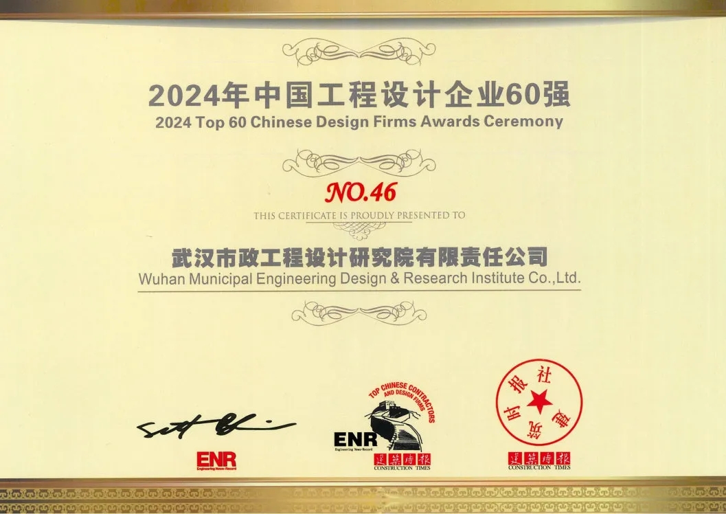 ? ? 近日,《建筑時報》和美國《工程新聞紀錄》(ENR)共同發(fā)布2024年度“中國承包商80強和工程設(shè)計企業(yè)60強”排名,武漢市政院榮膺“中國工程設(shè)計企業(yè)60強”稱號,排名第46位,位居武漢市屬設(shè)計企業(yè)第一名。