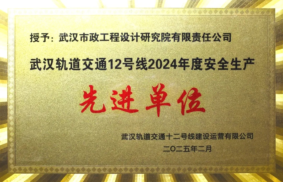 喜報|武漢市政院榮獲“武漢軌道交通12號線2024年度安全生產(chǎn)先進單位”稱號