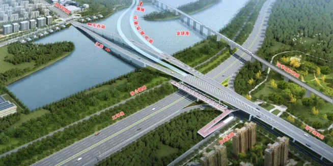 ? ? 根據(jù)項(xiàng)目邊界條件,橋梁工程采用差異化設(shè)計(jì)方案,針對不同路段特點(diǎn)進(jìn)行精細(xì)化設(shè)計(jì):跨黃潭湖深水區(qū)域段上部結(jié)構(gòu)采用預(yù)制鋼混組合梁,下部結(jié)構(gòu)采用高樁承臺配合吊箱圍堰施工,顯著提升施工效率;跨三環(huán)線采用86.6米大跨徑簡支鋼箱梁,跨徑位居國內(nèi)同類橋梁前列,并配套采用鋼-UHPC輕型組合橋面體系,有效提升結(jié)構(gòu)耐久性;陸地段選用預(yù)應(yīng)力混凝土結(jié)構(gòu),大幅降低建設(shè)成本。