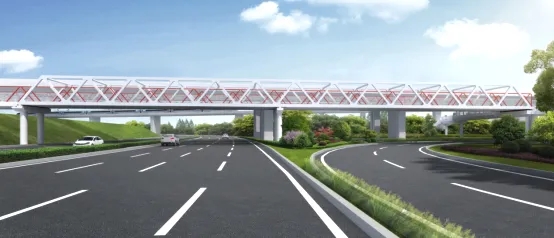 ? ? 跨三環(huán)線慢行橋采用桁架梁結(jié)構(gòu),桁架以“江城鐵運(yùn)”為設(shè)計(jì)概念,以飛馳而過的火車為設(shè)計(jì)意向,形成動感而具有生命力的橋梁造型。在桁架之間固定的防拋網(wǎng)中采用連綿起伏的山形鋼條作為裝飾,如火車飛馳經(jīng)過群山,使天橋整體富有故事感。