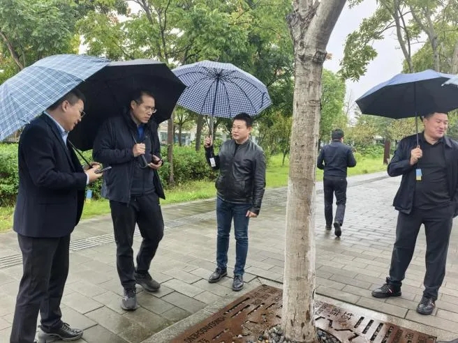 在紅鋼城大街,考察組對(duì)工業(yè)風(fēng)街道家具、銹蝕鋼板打造的特色樹穴蓋板與路緣石、以及公交站臺(tái)無障礙設(shè)施及帶狀排水溝的人性化設(shè)計(jì)高度肯定;來到和平大道,考察組對(duì)特色路緣石、造型路燈與林蔭綠化充分贊賞,強(qiáng)調(diào)街道設(shè)施需與周邊環(huán)境深度融合;在新建成的右岸大道南延段,考察組肯定道路鋪裝、檢查井、雨水口的建設(shè)品質(zhì),著重強(qiáng)調(diào)精細(xì)化施工對(duì)工程質(zhì)量的關(guān)鍵作用;走進(jìn)中山大道,考察組對(duì) “公交優(yōu)先、還綠于民” 的建設(shè)理念高度認(rèn)同,指出武漢與雄安在街道空間一體化設(shè)計(jì)領(lǐng)域有諸多共通點(diǎn),具備廣闊的互學(xué)互鑒空間??疾烊?,武漢市政院團(tuán)隊(duì)詳細(xì)介紹了各項(xiàng)目的設(shè)計(jì)思路與建設(shè)歷程。