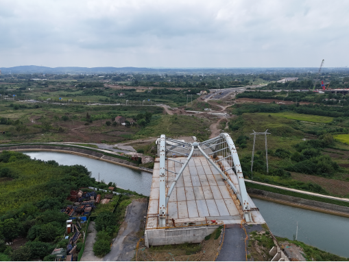 ? ? 生態(tài)優(yōu)先,構(gòu)筑和諧跨越景觀。道路跨越重要的漳河水庫總干渠,設(shè)計(jì)創(chuàng)新采用90米下承式簡支鋼箱拱橋,造型寓意“雙龍戲珠”,在確保水源安全與灌溉功能不受影響的前提下,打造出震撼的視覺地標(biāo),實(shí)現(xiàn)了功能、生態(tài)與景觀的有機(jī)融合。