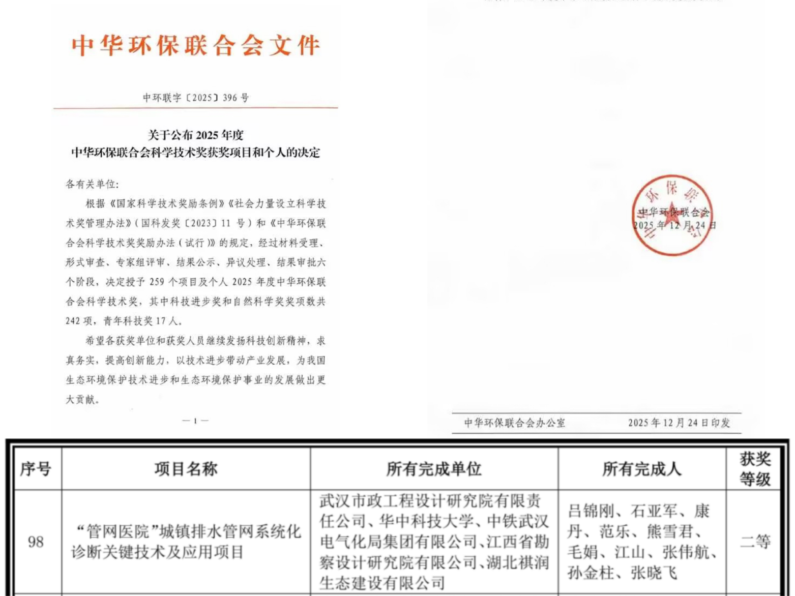喜報(bào) | 武漢市政院自主研發(fā)的“管網(wǎng)醫(yī)院”核心技術(shù)斬獲國(guó)家級(jí)協(xié)會(huì)科技進(jìn)步獎(jiǎng)