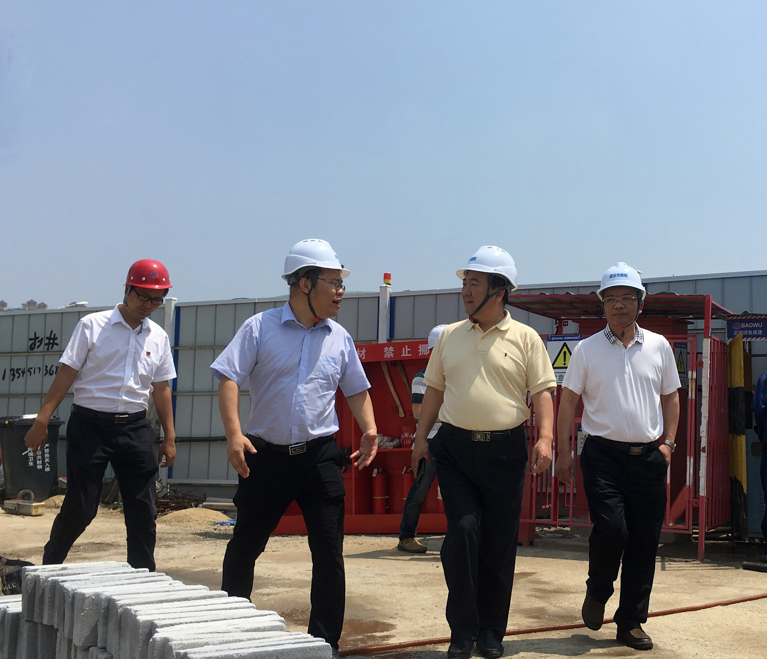 ??? 武興治一行先后到項目施工現(xiàn)場和項目部進行實地檢查,并與項目部管理人員召開座談會。項目常務(wù)副經(jīng)理劉小紅匯報了項目建設(shè)內(nèi)容及推進情況,施工單位武鋼綠色城市發(fā)展有限公司硚口項目部經(jīng)理陳照匯報了工程下一步計劃安排。