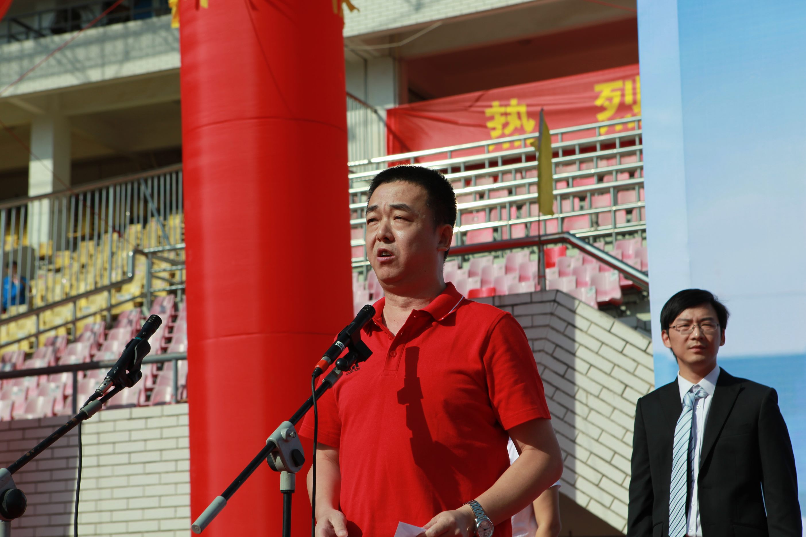 ??? 市城建委黨組副書記、副主任熊明亮在講話中充分肯定了公司在體育文化建設中取得的工作成果,并預祝本次運動會圓滿成功。運動員代表和裁判員代表先后上臺宣誓,公司董事長柯昌春宣布運動會開幕。