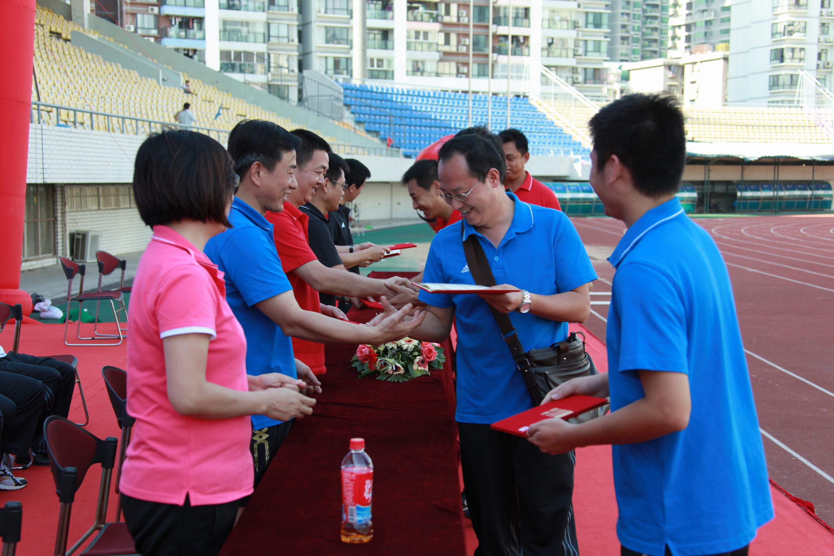 ??? 在閉幕式上舉行了隆重的頒獎儀式,三十六名在比賽中發(fā)揮出色的運動員走到臺上,從公司領導手中接過榮譽證書,并接受了全場觀眾送出的熱烈的掌聲與歡呼聲。