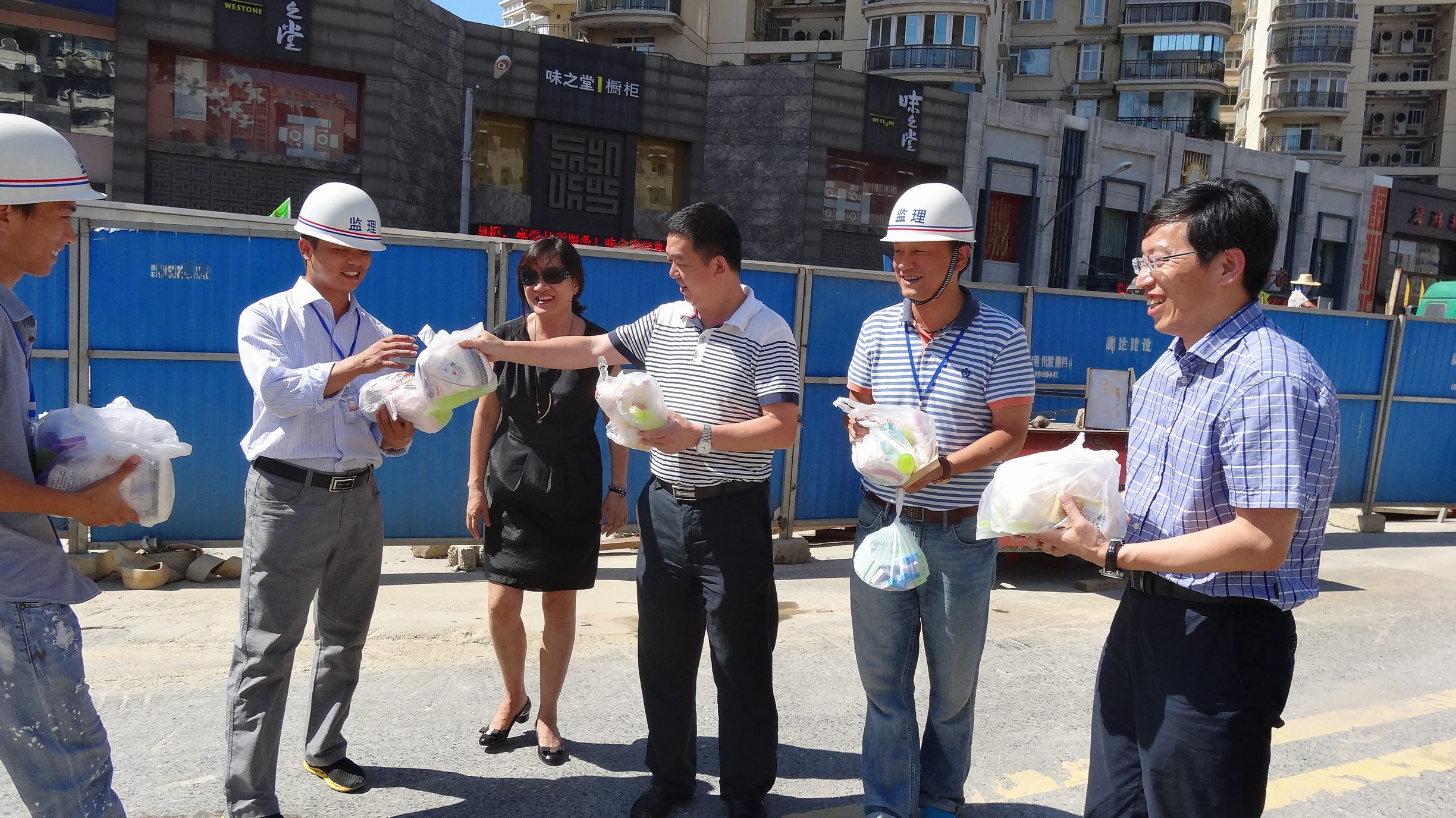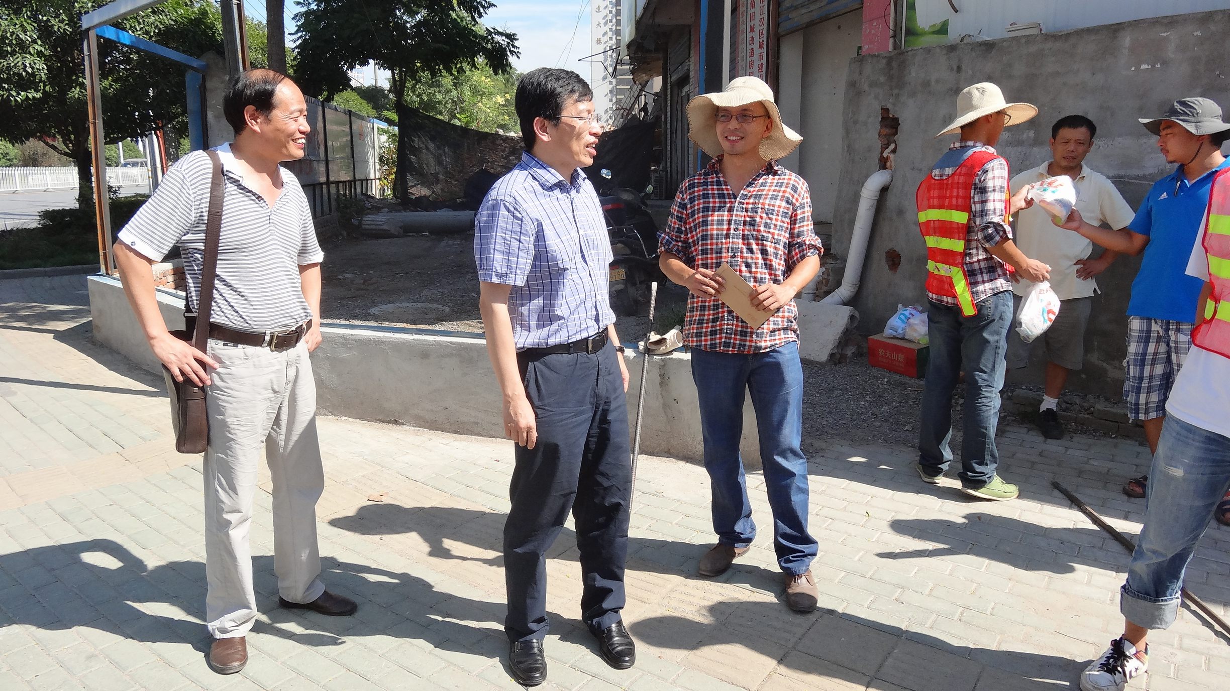 ??? 近段時(shí)間,武漢市出現(xiàn)了連續(xù)高溫天氣,但為了保障所承擔(dān)項(xiàng)目的按時(shí)推進(jìn),公司監(jiān)理、勘測(cè)、測(cè)試等外業(yè)人員仍然在烈日下堅(jiān)守工作崗位。8月16日,公司黨委書(shū)記蔡輝、副總經(jīng)理趙世杰、總經(jīng)理助理胡軍等一行在監(jiān)理公司、勘測(cè)設(shè)計(jì)院負(fù)責(zé)人的陪同下,對(duì)部分工地進(jìn)行了走訪慰問(wèn),為高溫下堅(jiān)持工作的員工送上一份清涼。