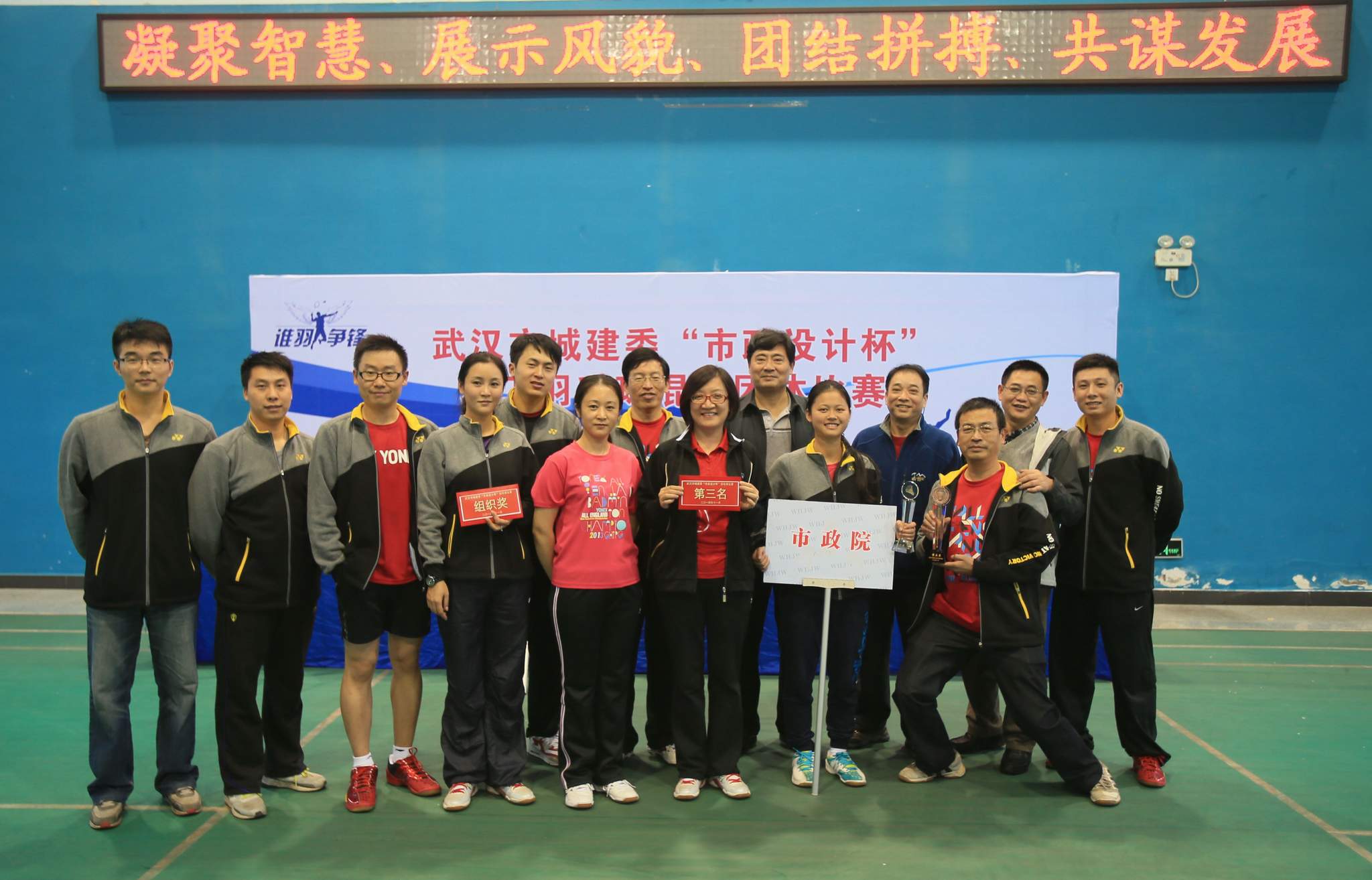 ??? 11月22日,武昌寧友羽毛球館內(nèi)人頭攢動(dòng),熱鬧非常,由武漢市城建委主辦、由公司承辦的“市政設(shè)計(jì)杯”職工羽毛球混合團(tuán)體比賽在這里舉行。比賽開(kāi)幕式由市城建委副巡視員朱宗信主持,公司黨委書(shū)記蔡輝代表承辦單位致辭。