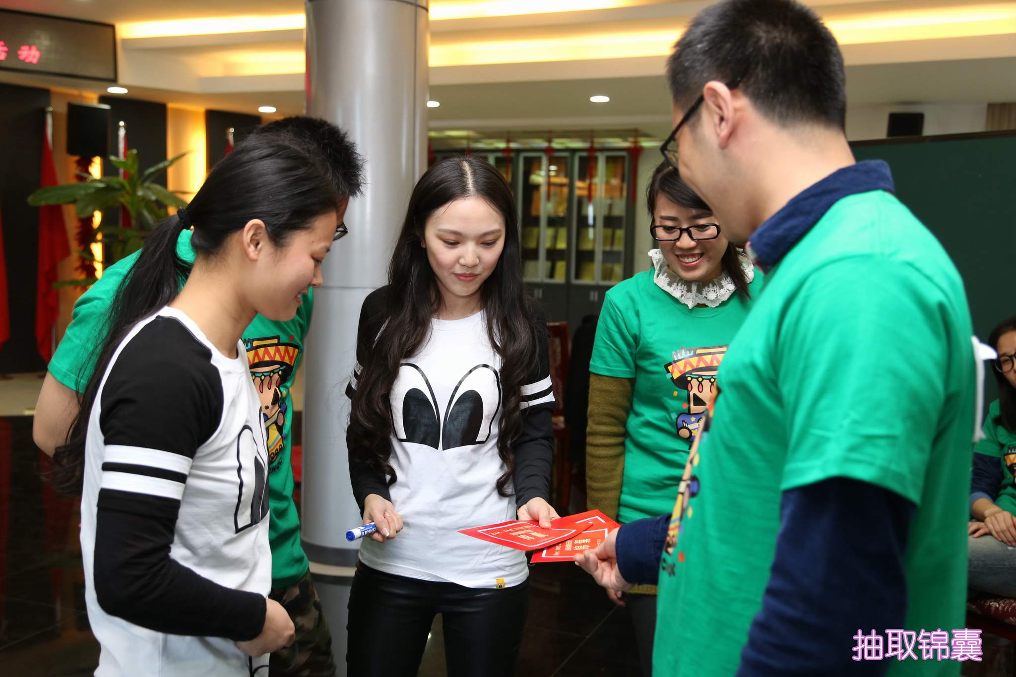 ??? 本次活動由公司工會、團(tuán)總支策劃并組織,公司黨委書記蔡輝、副總經(jīng)理趙世杰、總經(jīng)理助理胡軍,以及各分工會主席來到活動現(xiàn)場,為參加活動的選手們加油助威。來自公司不同部門的21名員工通過抽簽被分成了紅、黃、綠三個小組,在主持人的指揮下,他們首先前往指定的辦公室,尋找第一環(huán)節(jié)的重要道具——答題板,最終,綠隊最先找到了兩個答題板,在第二環(huán)節(jié)的競賽中占據(jù)了先機。