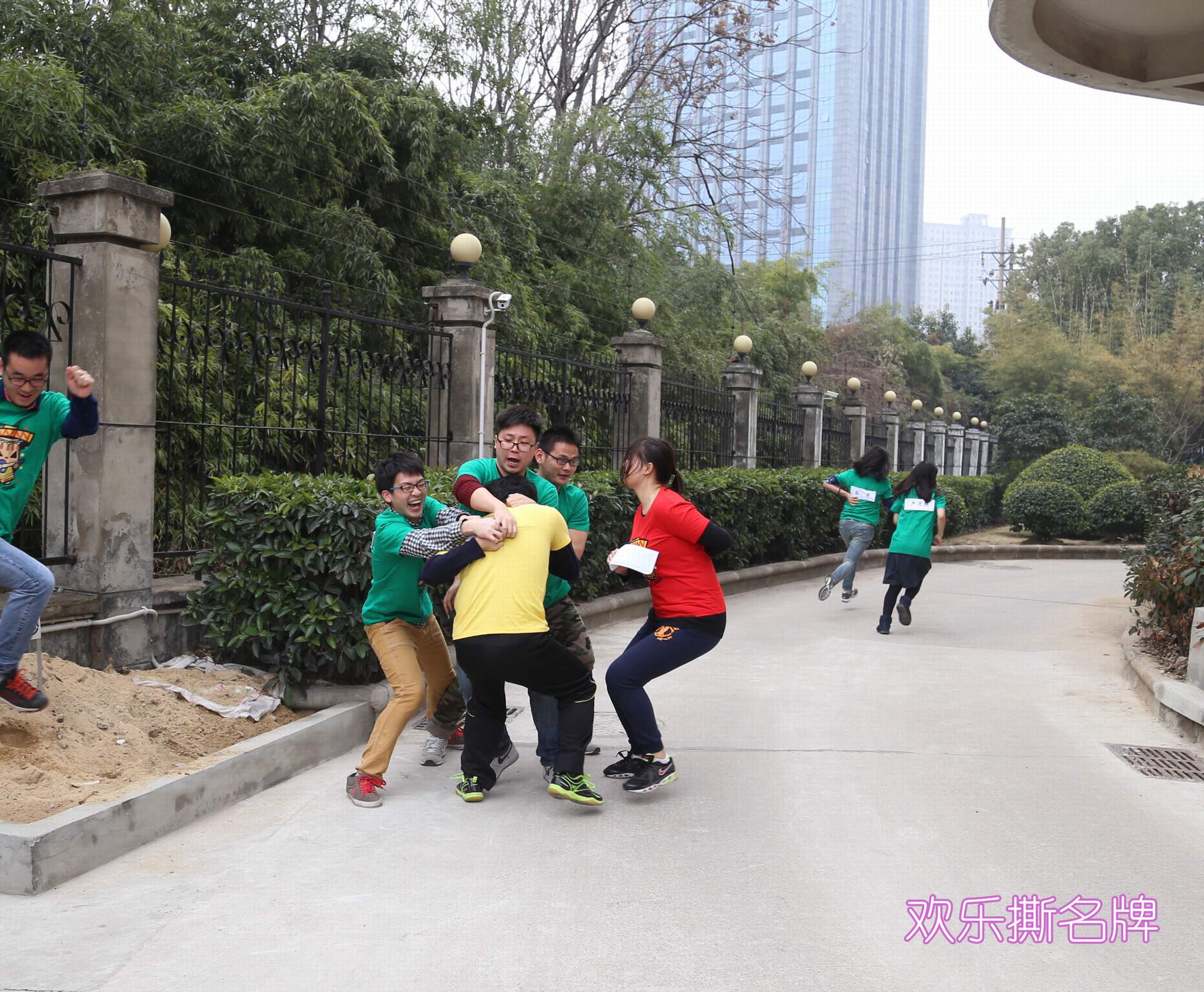 ??? 活動的最后一個環(huán)節(jié),就是撕名牌。每名隊員背后貼有自己名字的名牌,三支隊伍互相撕下對方的名牌,被撕下名牌者即遭淘汰,每隊最終保存名牌人員最多者獲勝。此時,綠、黃兩隊在前幾個環(huán)節(jié)中獲得的錦囊將發(fā)揮作用,包括“死亡筆記”(持有者寫下名字的隊員直接出局)、“傷害反彈”(被撕掉名牌者與實施行為者同時出局)、“女神的寬恕”(女隊員指定任意一名出局的參賽者復(fù)活)、“傷害冬眠”(撕掉技能持有人的名牌者冬眠15分鐘,不能攻擊,只能防守)。