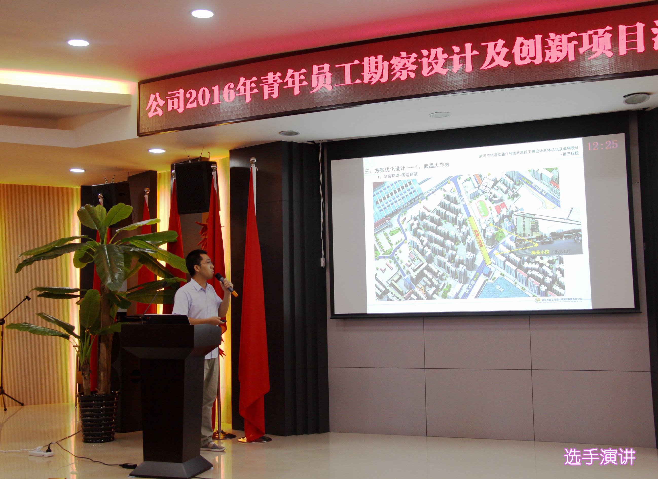 ??? 8月26日,一場以創(chuàng)新為主題的勘察設(shè)計及創(chuàng)新項目匯報演講比賽在公司二樓會議室舉行。參加本次演講比賽的11位青年員工從各部門、各專業(yè)的精心選拔中脫穎而出,具備了一定的技術(shù)能力和演講水平,是青年員工中的佼佼者。本次演講比賽吸引了近百名員工參加,由6名評委組成的評委會對演講人的綜合表現(xiàn)進(jìn)行評分,并以此為依據(jù)確定名次。公司相關(guān)領(lǐng)導(dǎo)出席了本次活動。