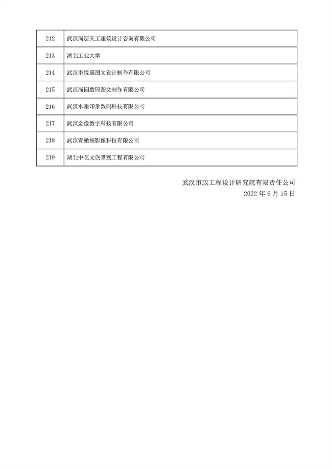 關(guān)于武漢市政工程設(shè)計研究院有限責(zé)任公司工程勞務(wù)分包(設(shè)計類)預(yù)選承包方庫項目的遴選結(jié)果公示